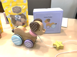 ひもを引っ張ると まあるいおしりを上下に振って走ります。