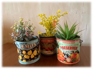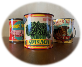 レトロな缶詰パッケージのハンドルが付いた缶。