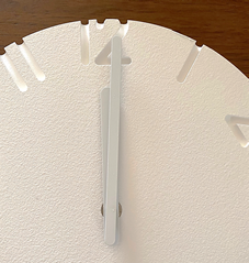 くり貫かれた文字盤の陰影が印象的な白の時計です。