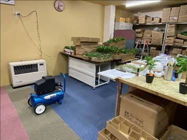 加工待ちの観葉植物に、加工済みのもの、みんな整然と並べられています。